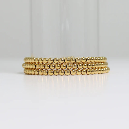 4mm 18K Gold PVD Coated Stainless Steel Metal Bead Stretch Bracelet