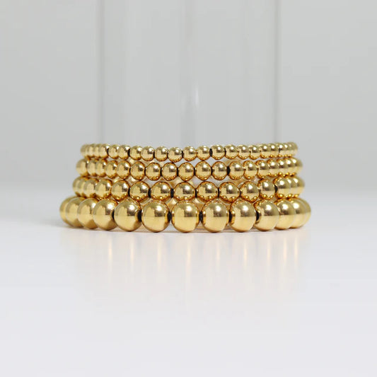 4mm, 5mm, 6mm Stack of 18K Gold PVD Coated Stainless Steel Metal Bead Stretch Bracelet